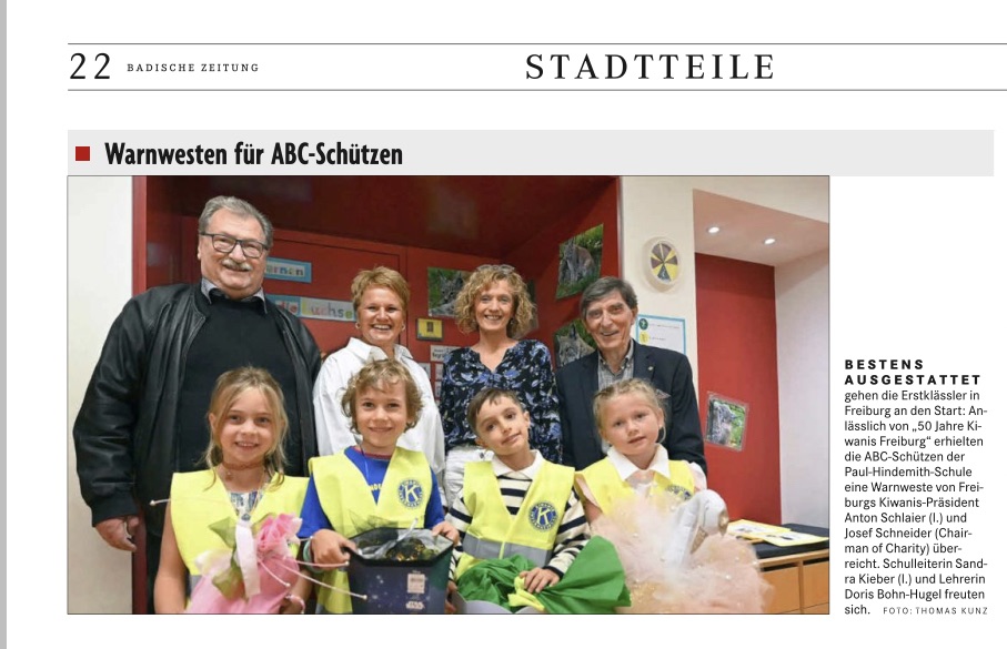 Anlässlich unseres Jubiläums haben wir rund 2000 Warnwesten an alle Erstklässler in Freiburg und Waldkirch verteilt.